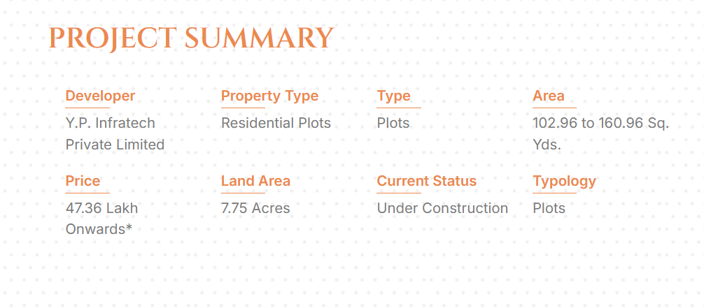 | 102.96 to 160.96 Sq. Yds. | Residential Plots | 47.36 Lakh Onwards* |